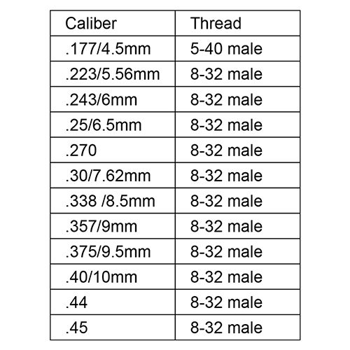 .177, .22, 6 मिमी, .25, .27, .30, .338, .35, .357, .40, .44, .45, .50कैलोरी।