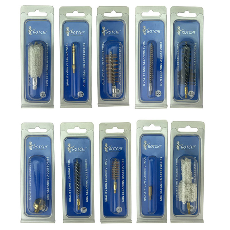 बोर की सफाई के लिए पीतल के तार बंदूक सफाई ब्रश। रोटची .177/4.5 मिमी से 12 गेज तक सभी कैलिबर प्रदान करता है। और अपनी स्मार्ट पसंद के लिए अलग-अलग पैकेजिंग रखें, जैसे क्लैमशेल/डबल ब्लिस्टर, बल्क, 3 पीस एक पैक, 10 पीस प्रति पैक।