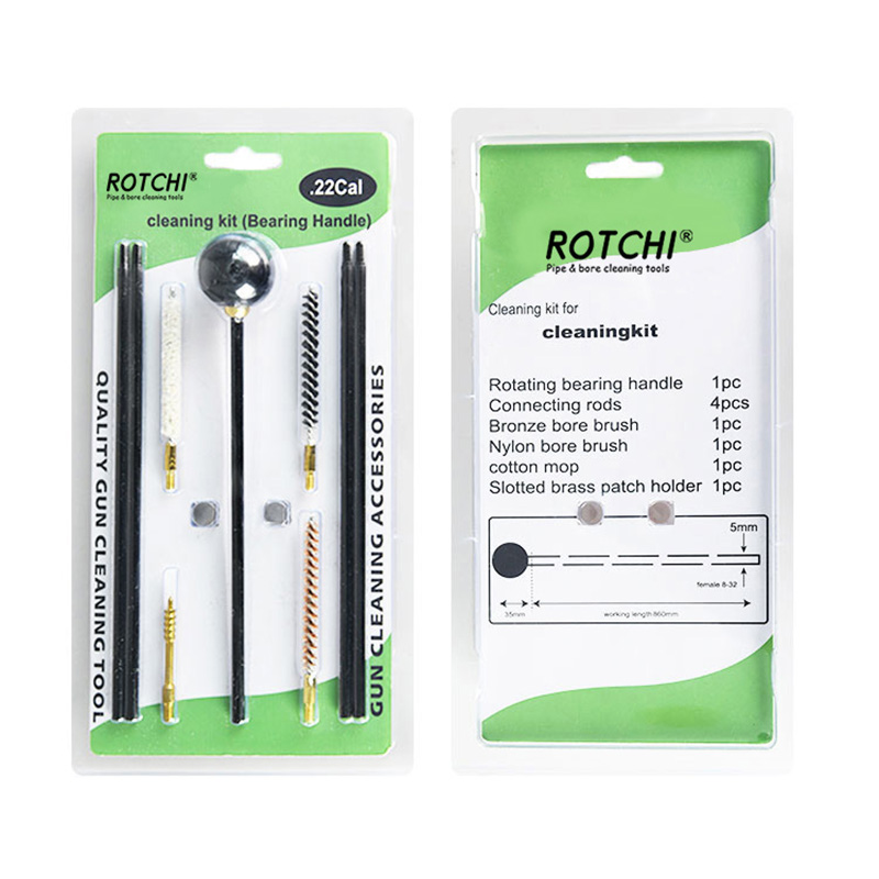 राइफल और एयरगन के लिए पेशेवर बंदूक सफाई किट। इसका बॉल हैंडल बेयरिंग के साथ न केवल ब्रश को स्वतंत्र रूप से घूमने वाले बोर में सफाई करने की अनुमति देता है, बल्कि आपको हाथ में एक आरामदायक हैंडल भी प्रदान करता है। सटीक मशीनीकृत छड़ें लंबी, सीधी और चिकनी होती हैं, जिनमें कनेक्शन पर कोई कदम नहीं होता है।