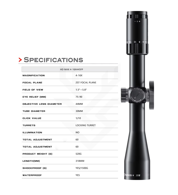 HD MAX 4-16X44SFP HD हाई लेंस हंटिंग मोनोकुलर टेलीस्कोप थोक