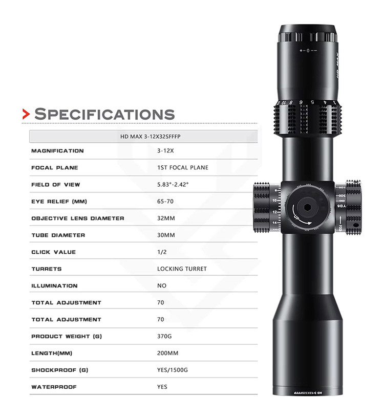 MAX 3-12X32SF FFP HD हाई लेंस हंटिंग मोनोकुलर टेलीस्कोप थोक