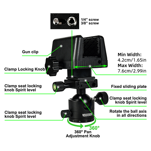 शिकार शूटिंग स्टिक मोनोपॉड ट्राइपॉड के लिए OEM सीएनसी एल्यूमिनियम 360 डिग्री बॉल हेड शूटिंग सैडल रेस्ट क्लैंप