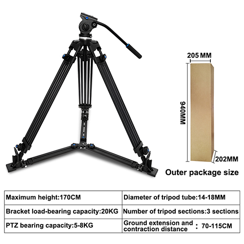 फ्लूइड हेड के साथ OEM ODM प्रोफेशनल हेवी ड्यूटी वीडियो कैमकॉर्डर ट्राइपॉड