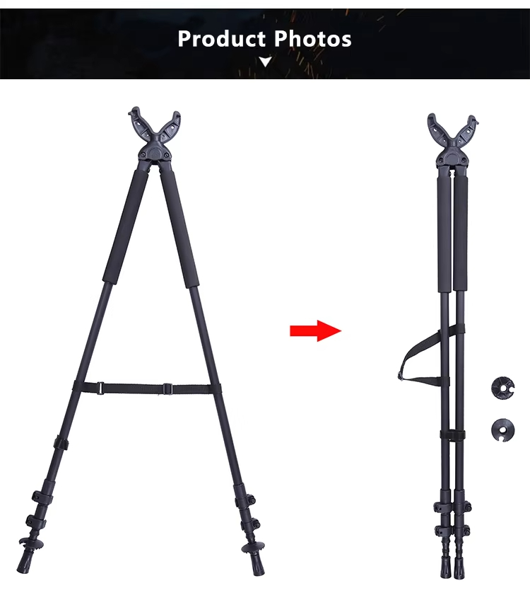 आउटडोर टैक्टिकल गन पोर्टेबल ट्राइपॉड सपोर्ट हंटिंग टेलीस्कोपिक शूटिंग रॉड वी-आकार का रोटरी योक ट्राइपॉड