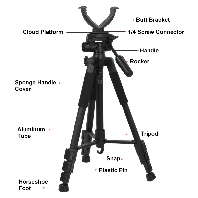 आउटडोर टैक्टिकल गन पोर्टेबल ट्राइपॉड सपोर्ट हंटिंग टेलीस्कोपिक शूटिंग रॉड वी-आकार का रोटरी योक ट्राइपॉड