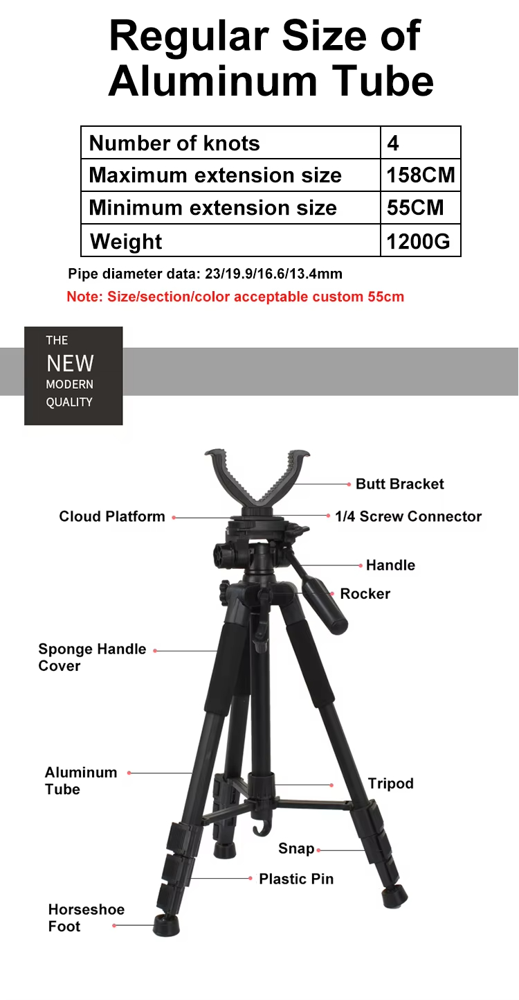 एल्यूमिनियम तिपाई, टिकाऊ गन माउंट, विद्युत रूप से समायोज्य ऊंचाई