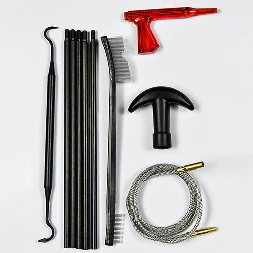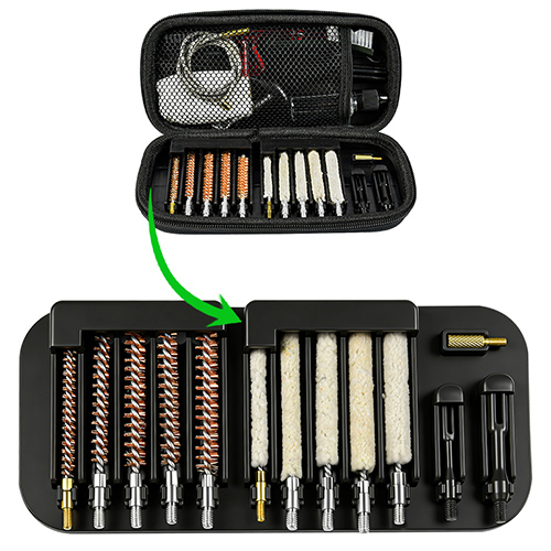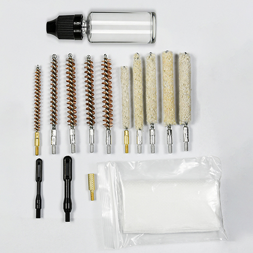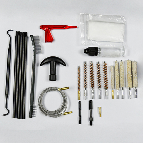 राइफल सफाई किट में 5 आकार (.177, .22, .243, .27, .30 कैलोरी), पीतल के ब्रश शामिल हैं और सूती मोप्स, 5 छड़ें, 2 कैल्ब्स। विकल्पों के लिए रेत और काला रंग।