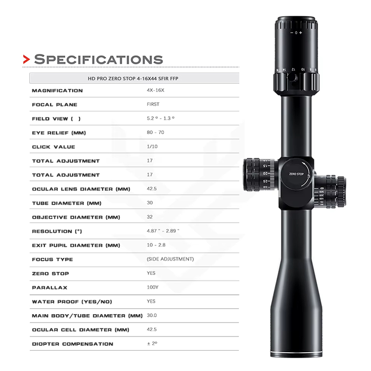 जीरो स्टॉप 4-16X44 एसएफआईआर एफएफपी-ए 30एमएम व्यास एचडी लाइट-ट्रांसमिटिंग जीरो स्टॉप हंटिंग स्कोप एफएफपी